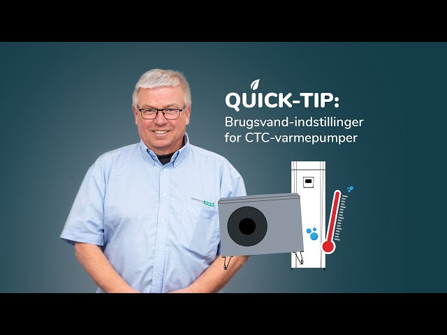 I denne video viser vi, hvordan du indstiller temperaturen på det varme brugsvand, og hvordan du laver midlertidigt ekstra varmt brugsvand på en CTC-varmepumpe.